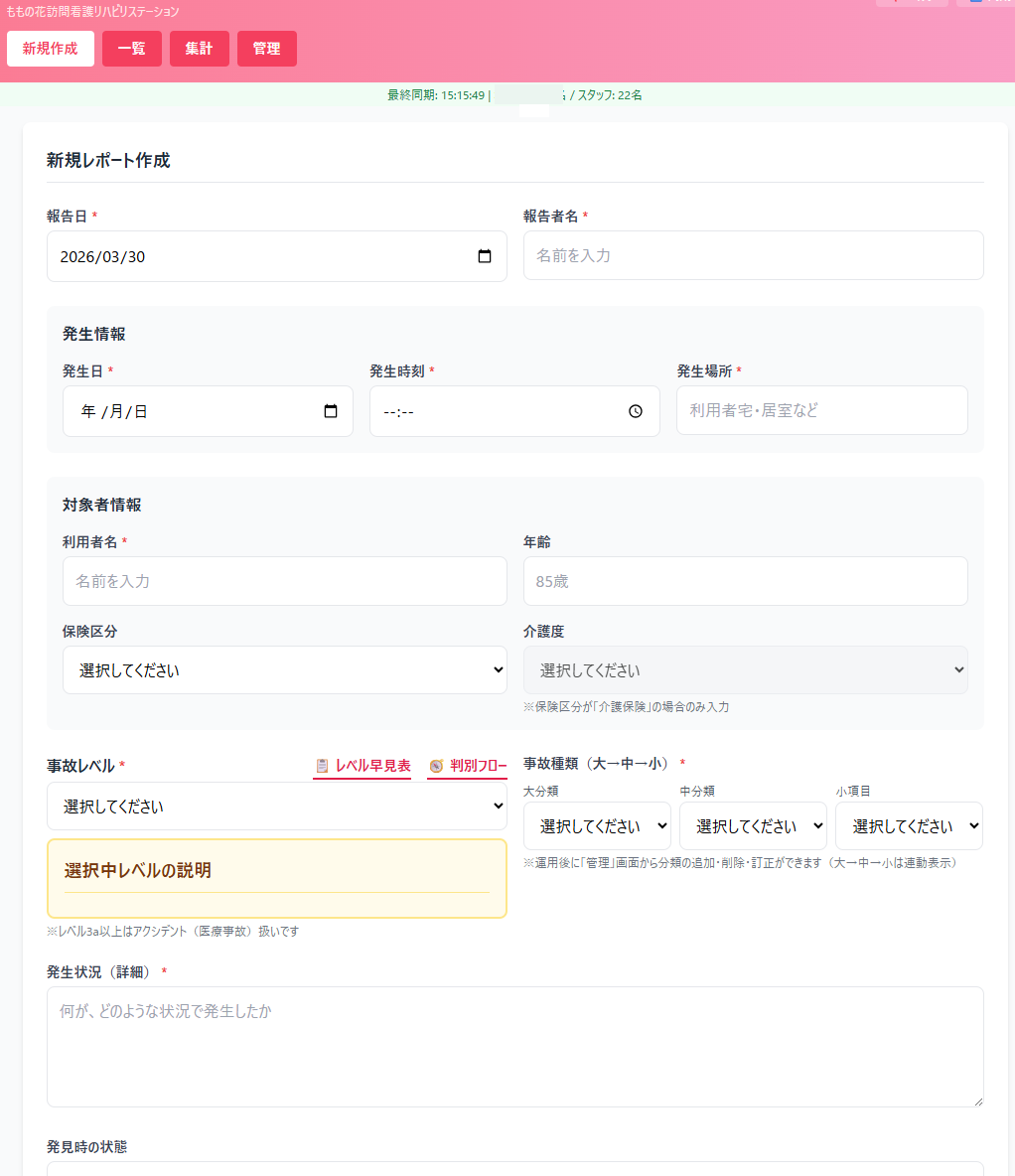 忙しい日の勤務後に記録の時間をとることが、スタッフにとって少なくない負担になっていたんです。「書かなきゃ」と思いながら後回しになったり、月末に担当スタッフが集計で残業したり。記録作業の負担を軽くして、もっとケアそのものに集中したい——その思いが、ずっとどこかにありました。