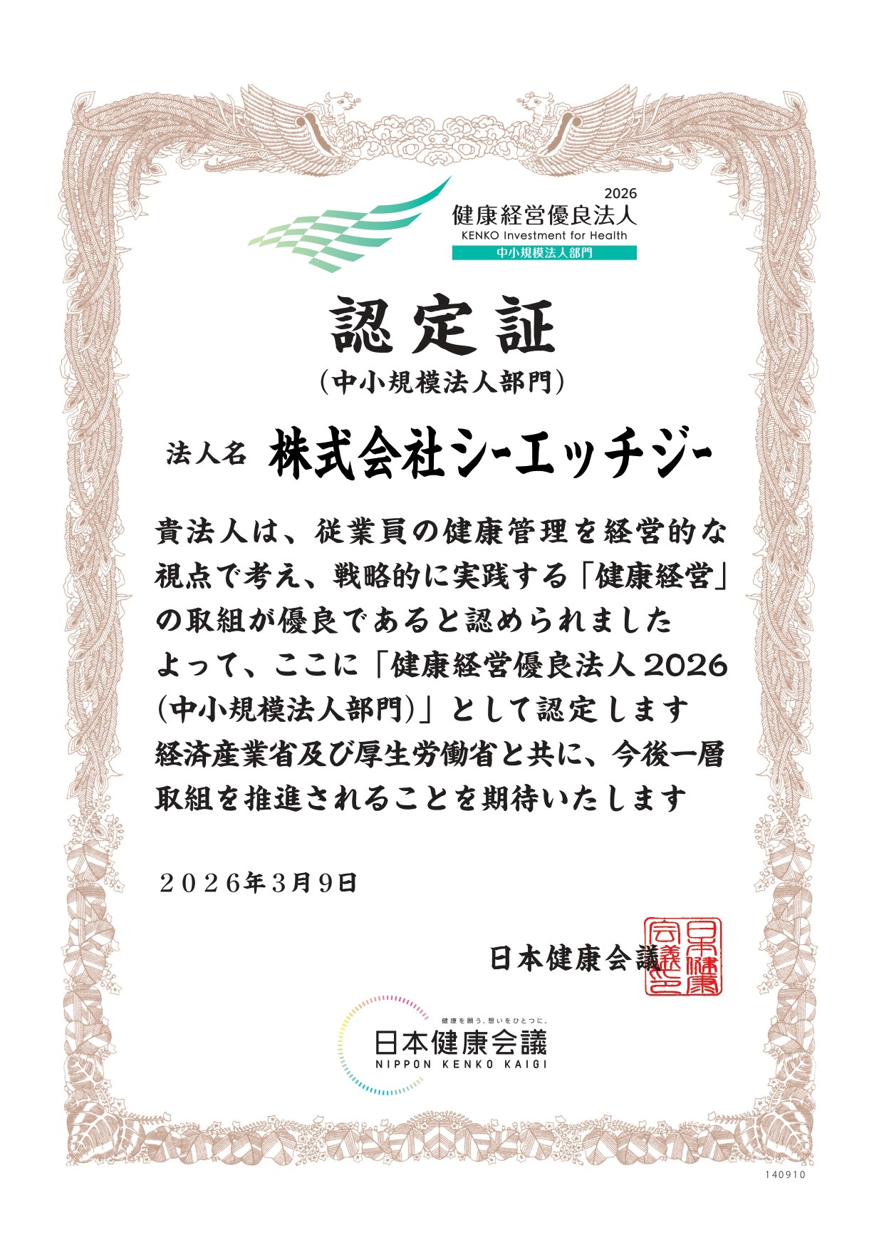 「健康経営優良法人2026(中小規模法人部門)」に認定されました。